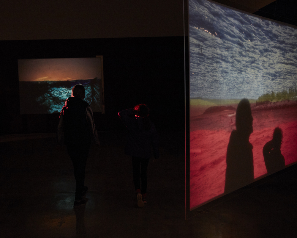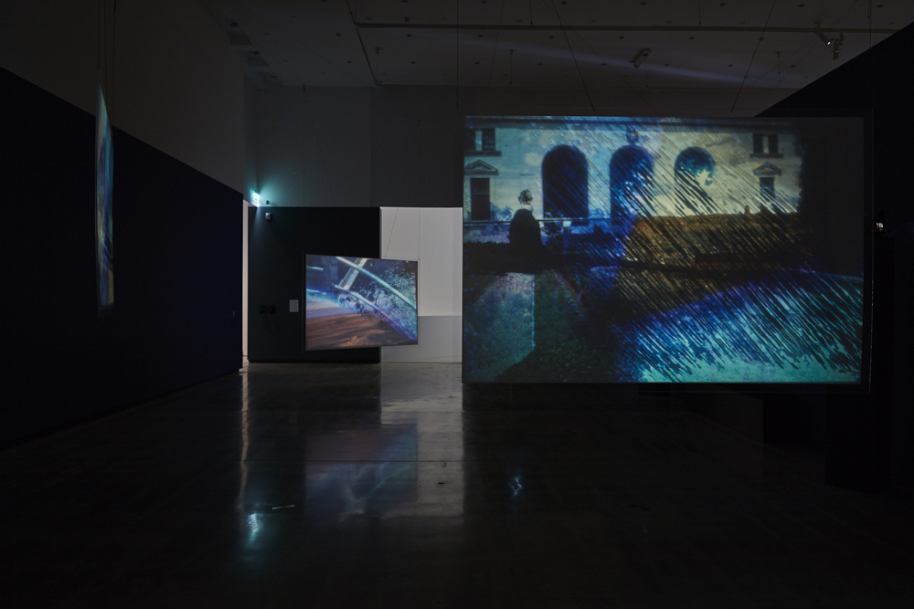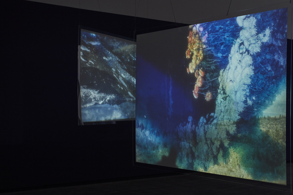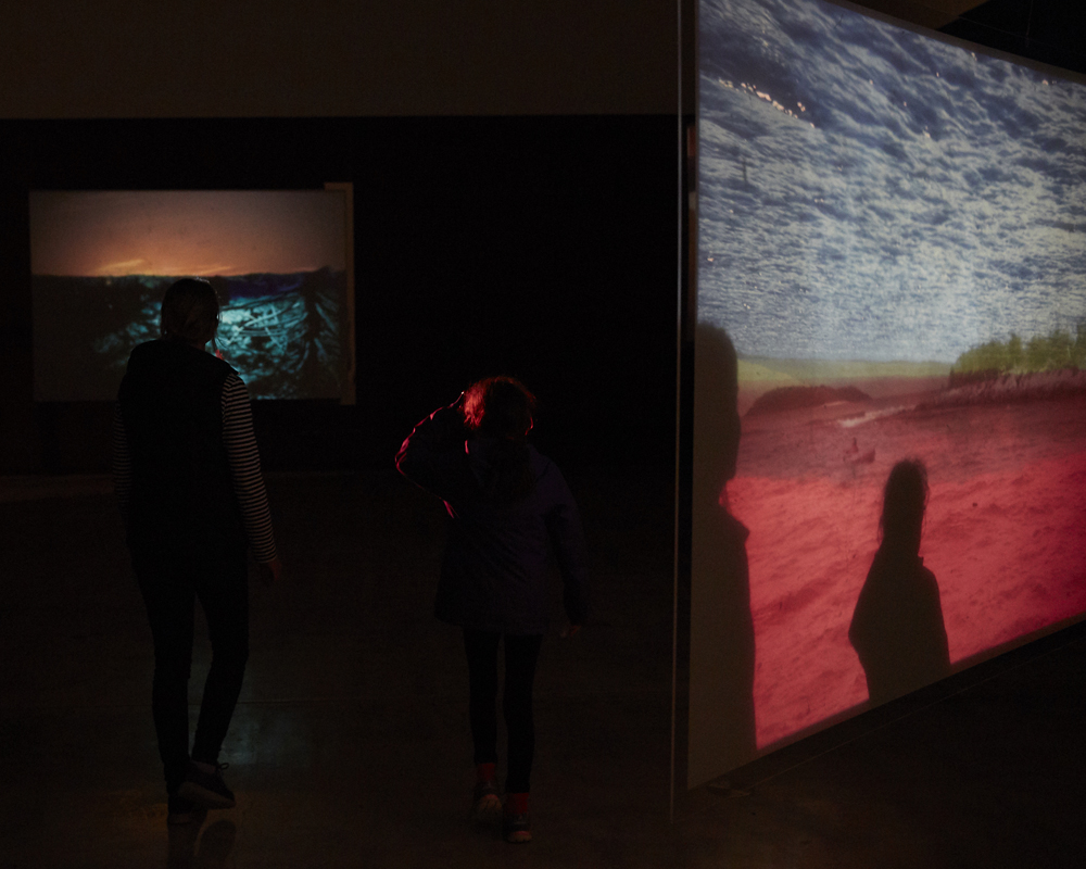 The point of the horizon – the line at which the images meet – continuously shifts, simulating the motion of travel. As the artist explains, ‘They say when you are sea sick, you should look to the horizon as a kind of constant definitive state. If there is no horizon, or the horizon is forever shifting into another landscape, then the only option left is to float and find this place where you are at the whim of your surroundings.’