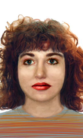 ‘Melinda’ was constructed using the answers of a questionnaire focussed on her personal appearance. Using her own description of herself, the ‘idea’ of what she may look like was transferred into an image with Criminal Identification technology and the assistance of a Forensic Artist.